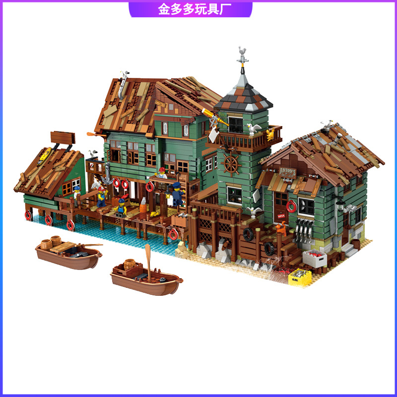 優格30102創意街景老漁店船長埠頭組立模型啓蒙児童益智積み木玩具