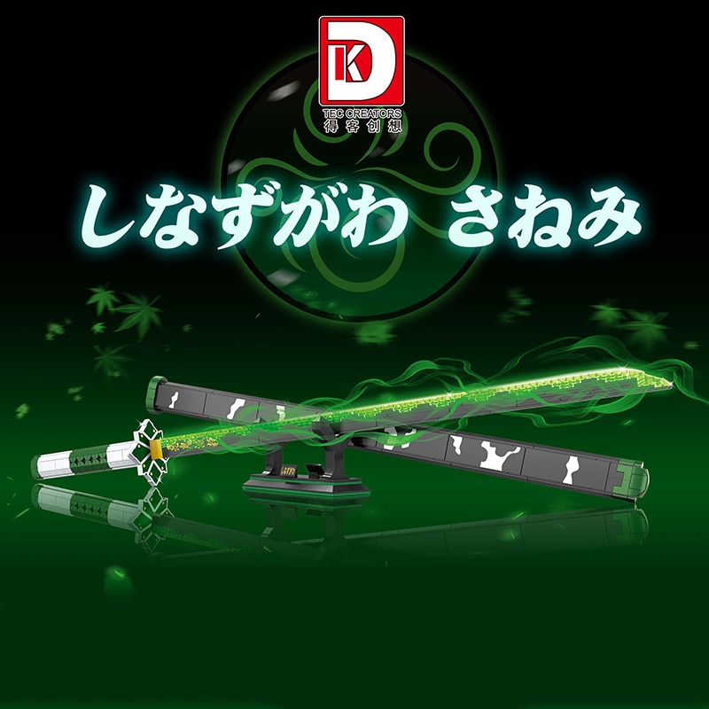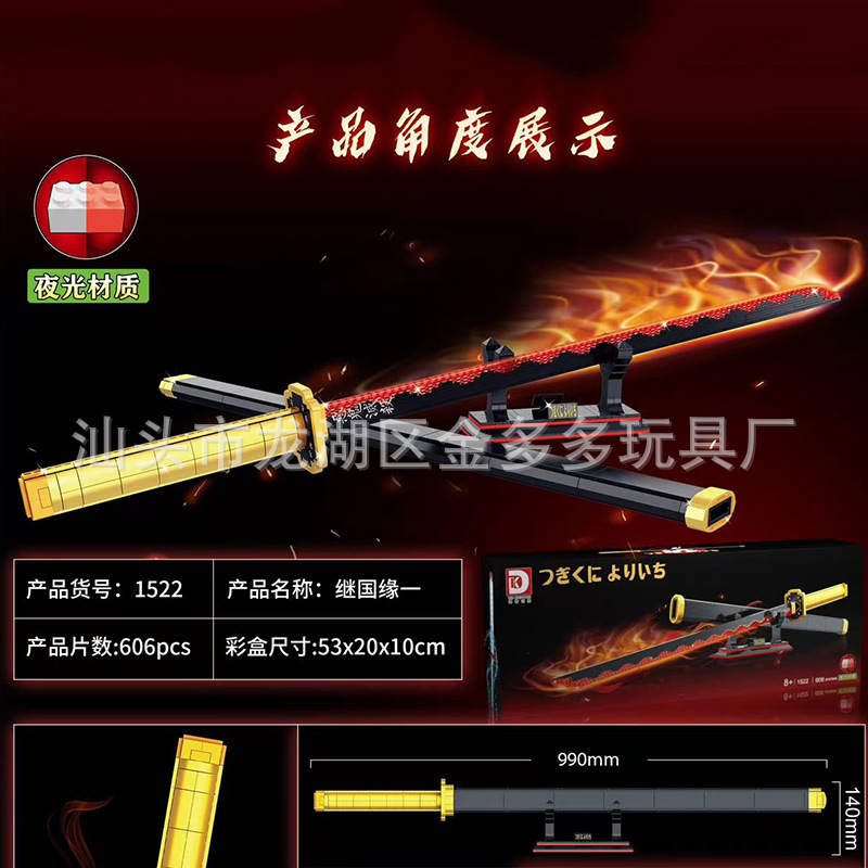 お客さんの新商品は国の縁の一日の輪刀の夜光版の益智の男の子をつないで積み木の武器のおもちゃの武士の刀を挿し込みます。