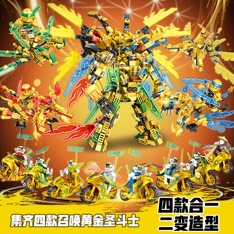 68090黄金怒龍機甲diy三頭神龍組立積み木模型幻影忍者龍族ly68088