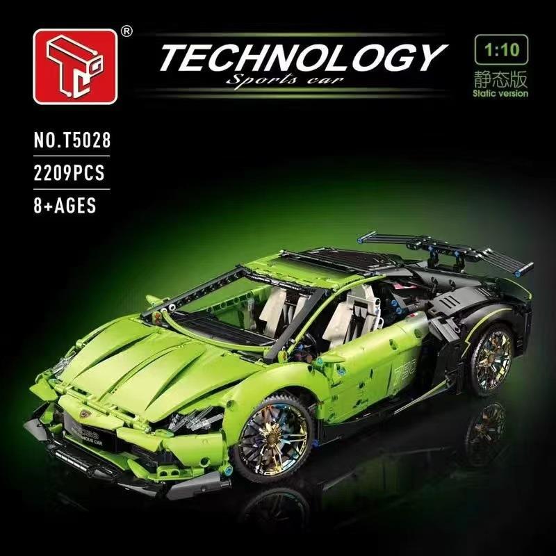 泰高楽t 5028ブルーボルギーニ緑牛リモコンスポーツカーの難易度の高いパズルは積み木のおもちゃの男の子をつづり合わせます。