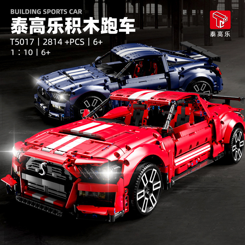 泰高楽t 5017フォードのムスタングのシェルビーのスポーツカーの模型のおもちゃの小さい粒子は積み木の香江の置物をつづり合わせます。