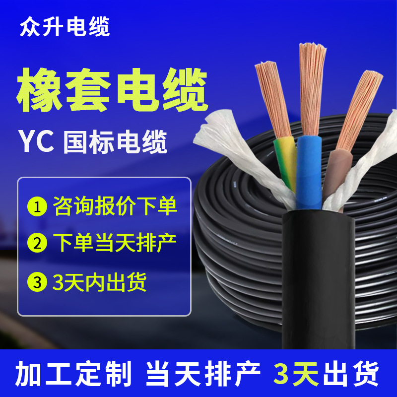 YC国標純銅電線YZゴムコード電源ケーブル2/3/5/4/6/10/16平方