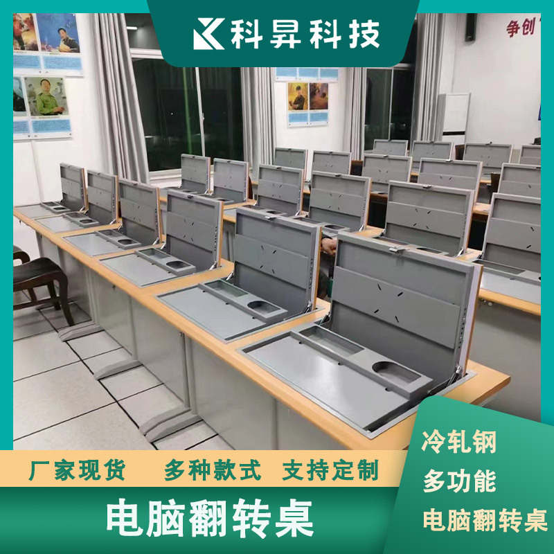 コンピュータのデスクのトレーニング機関のマルチメディアの学生の操作台の鋼の木をひっくり返してデスクを結合してコンピュータのデスクを隠します。