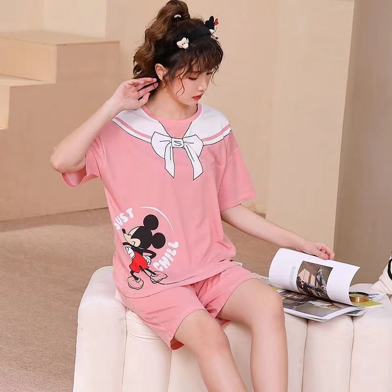 東南アジアのパジャマ女性の夏のゆるいプラスサイズの甘いかわいいアニメ半袖パンツ女性の部屋服セット