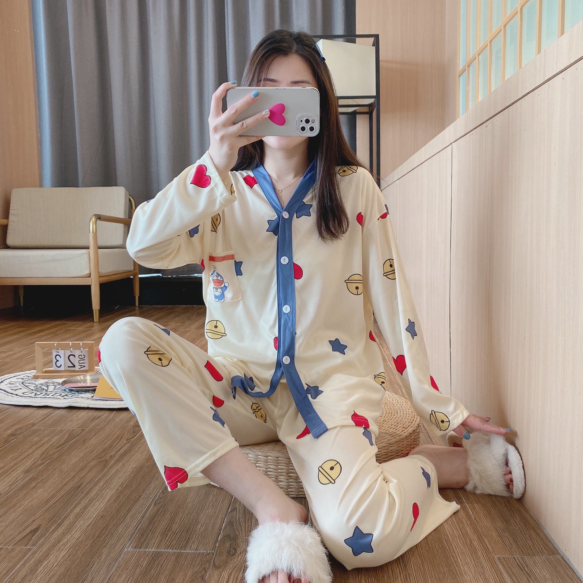 パジャマ少女2022新型vネックカーディガンセット学生かわいい春秋長袖ホームウェアアニメ