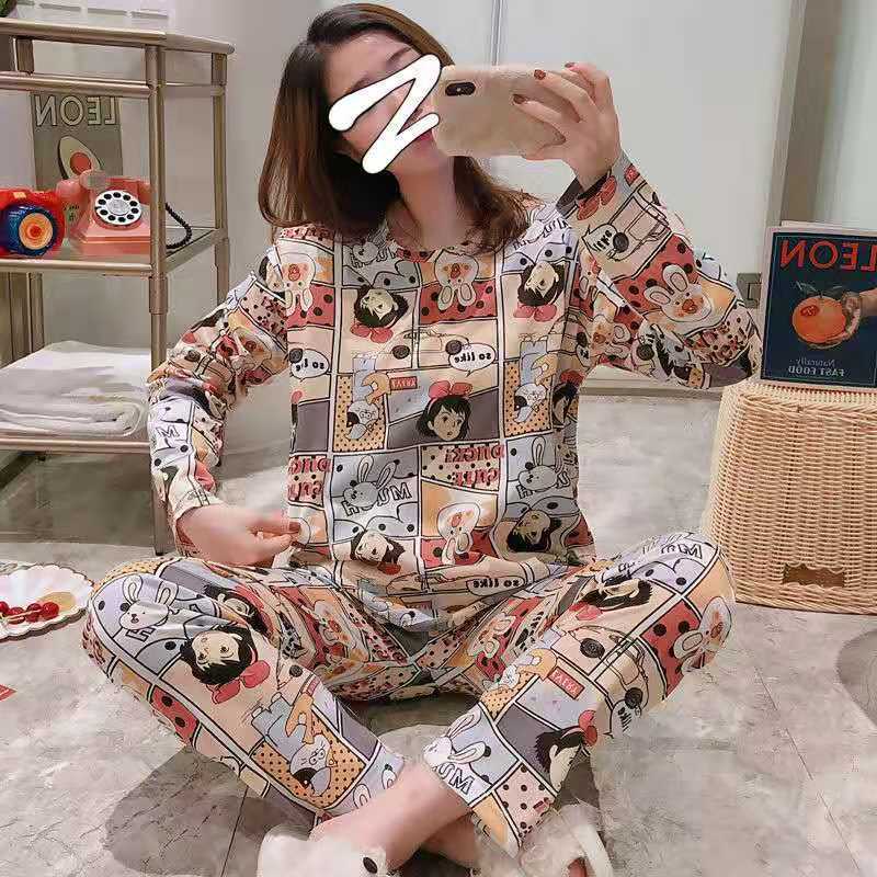 パジャマレディース長袖春と秋の冬のゆったりした韓国版レディース大きいサイズの薄いモデルかわいい学生ホームウェア2点セット