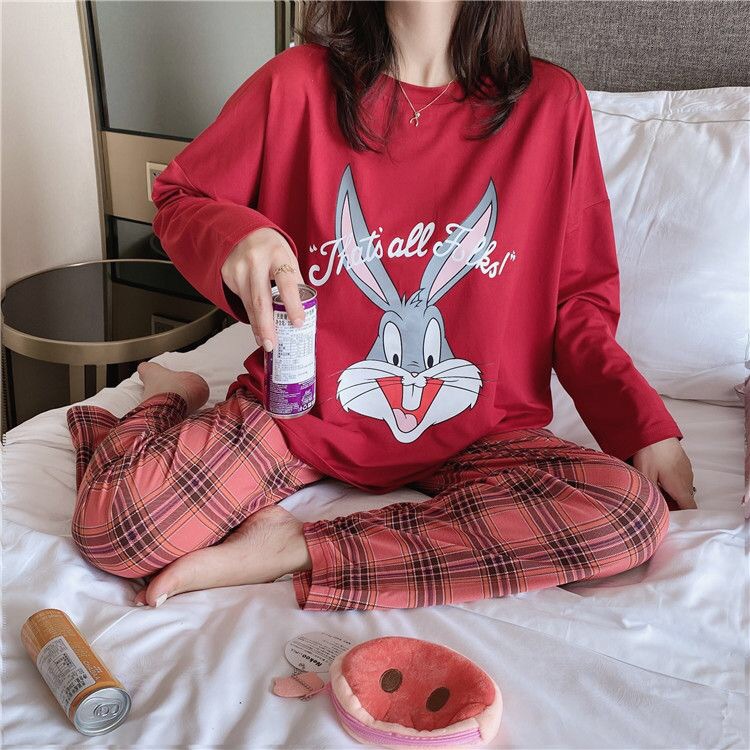 パジャマレディース春秋長袖ズボン秋冬韓国版かわいい学生は薄手の家庭服スーツを着ることができる