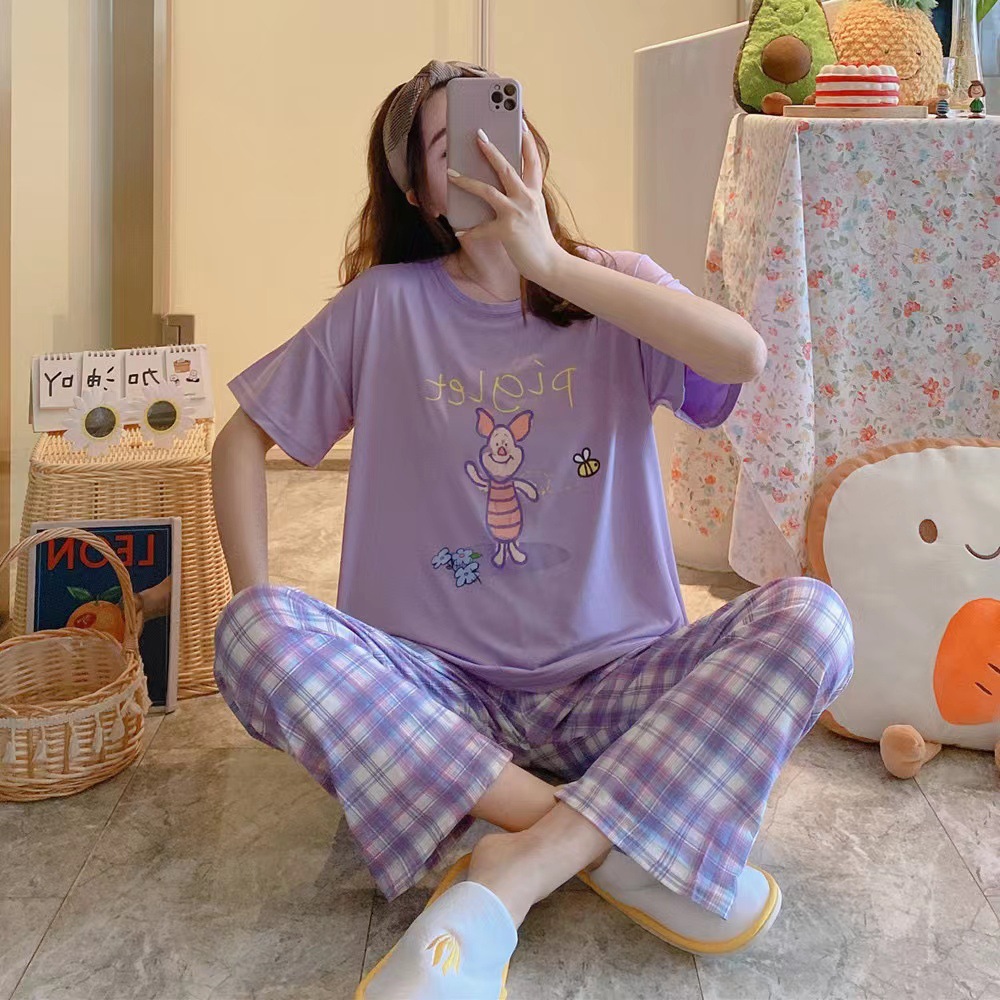 【複数オプション】パジャマ女性夏半袖パンツ2点セット夏アニメカジュアル女性ホームウェアセット