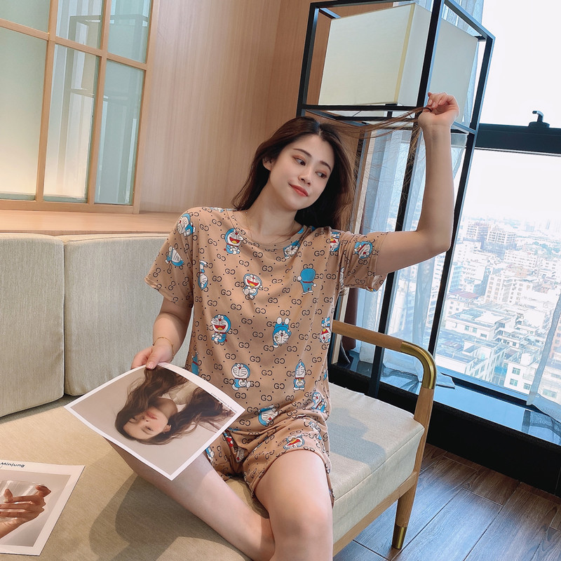 パジャマの女性の夏の半袖の半ズボンのカジュアルで甘い漫画のパジャマの女性の部屋の服のスーツの女性のパジャマは外に着ることができます。