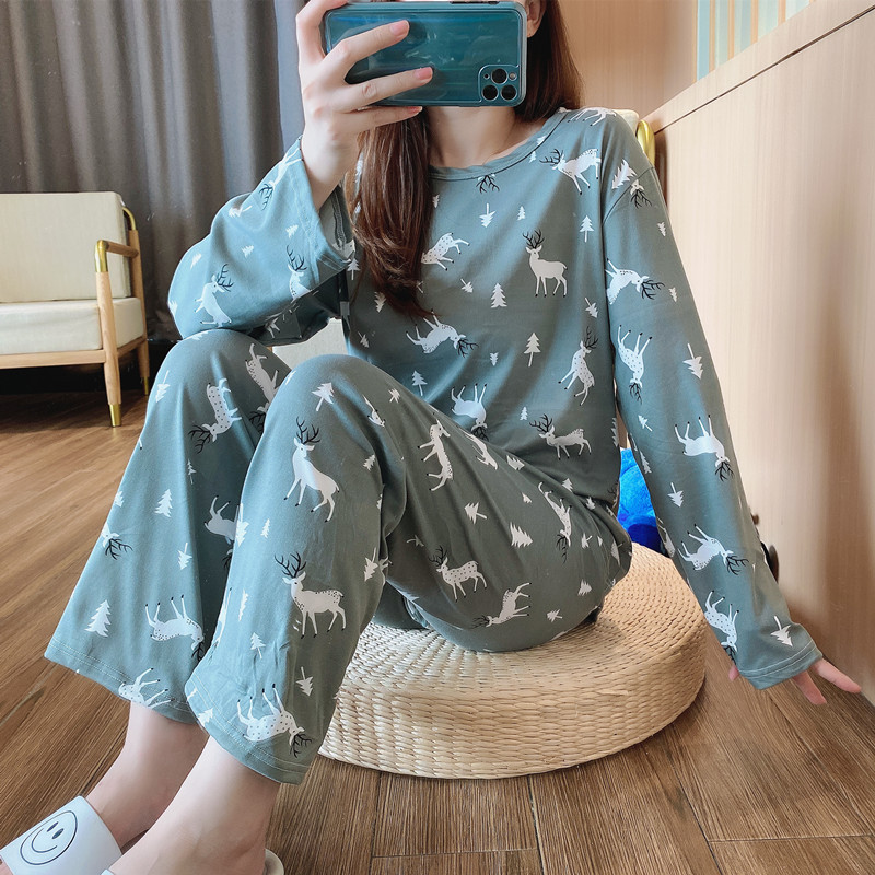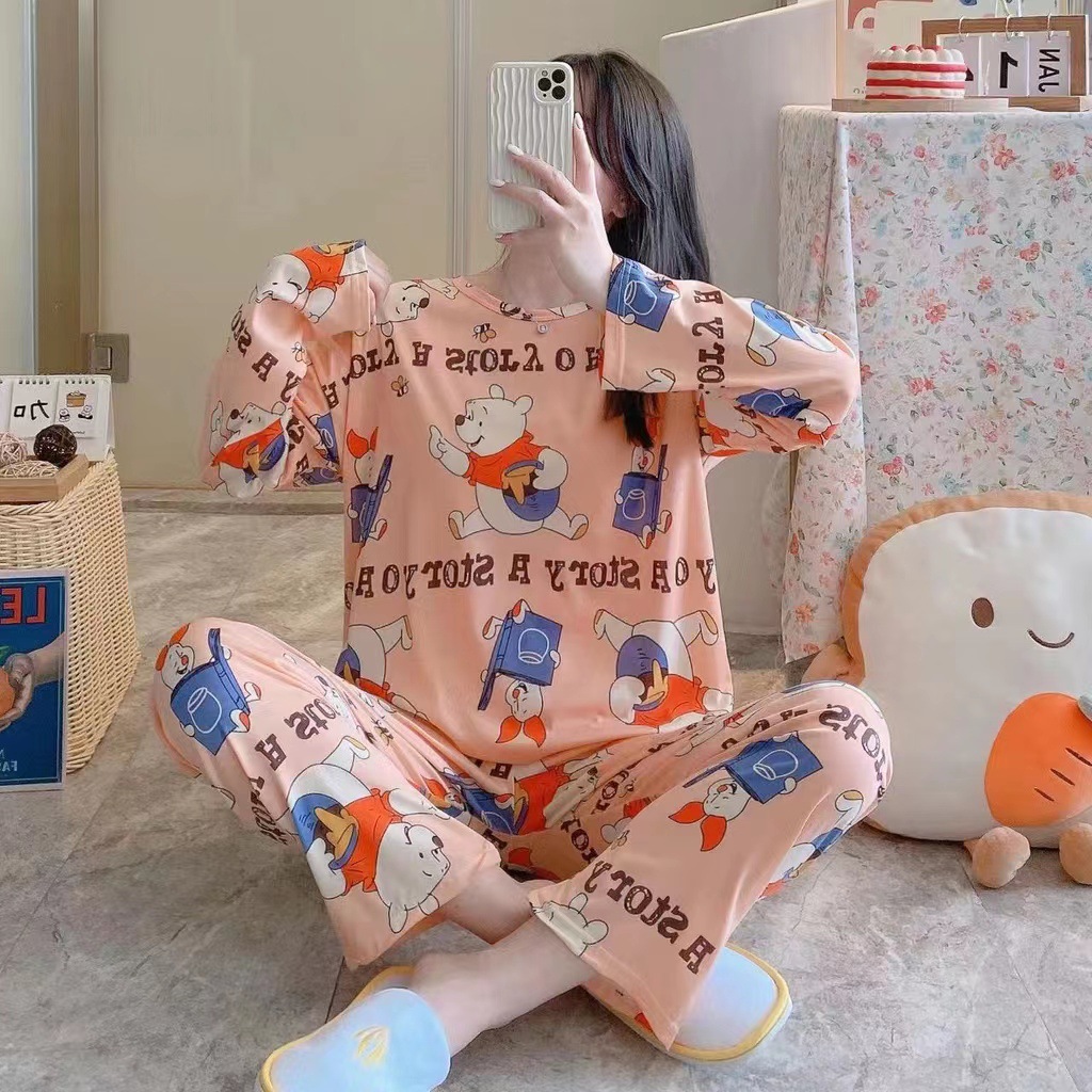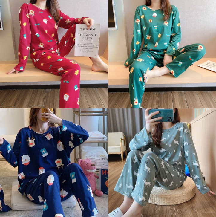 東南アジアのパジャマの女性の春秋の新型の長袖のズボンの漫画のゆったりしている大きいサイズは家庭服のスーツを着ることができます。