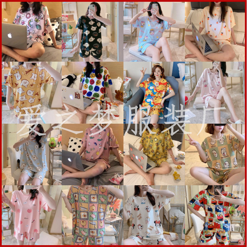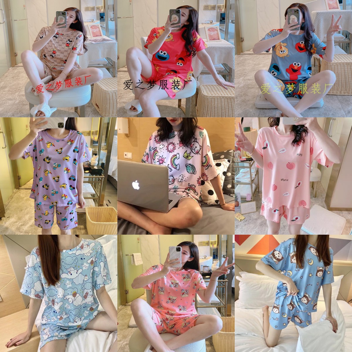レディースパジャマ夏ゆるい半袖ズボン漫画カジュアル甘いパジャマ女性ホームウェアスーツクロスボーダー外国貿易
