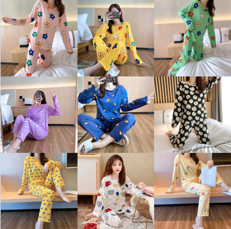 2020秋の新しいパジャマ女性春と秋の長袖韓国版カジュアルアニメ甘い家庭服学生2点セット
