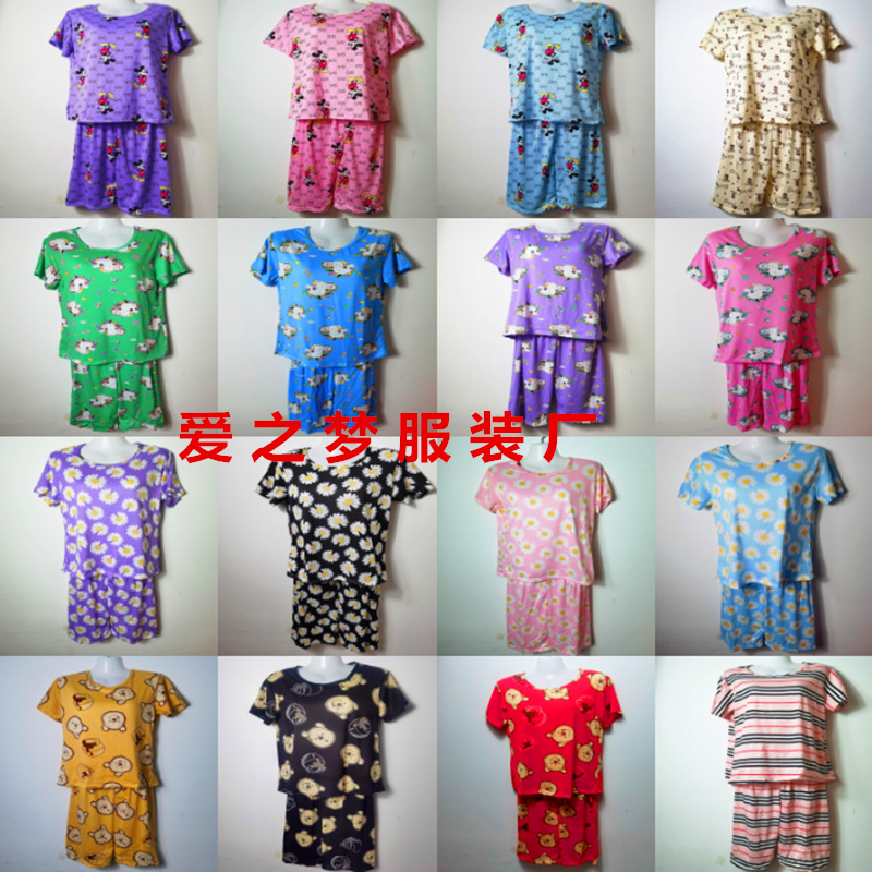 新しいパジャマの女性の夏の韓国版の半袖の半ズボンのゆったりしているプリントのかわいい部屋の服のスーツのパジャマの女性の2枚