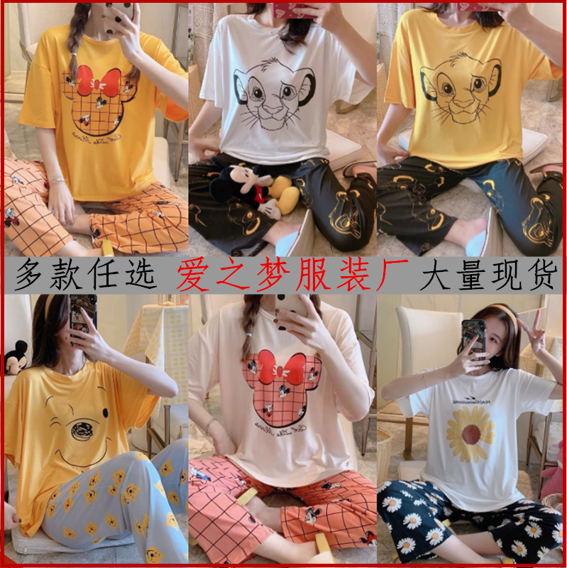 パジャマの女性の夏の半袖のズボンの韓国版のゆったりしている甘い漫画のパジャマの女性の部屋の服のスーツは外で着ることができます。