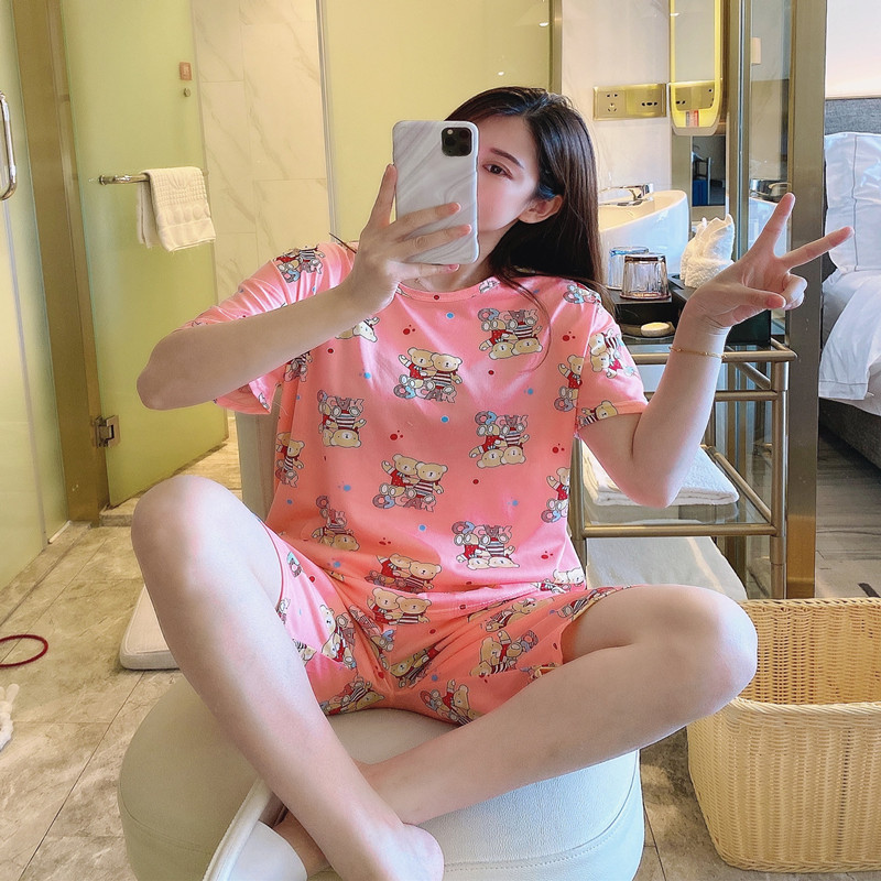 パジャマの女性の夏のゆったりとした大きいサイズの甘いかわいい学生の半袖の半ズボンは韓国版の部屋の服のスーツを着ることができます。