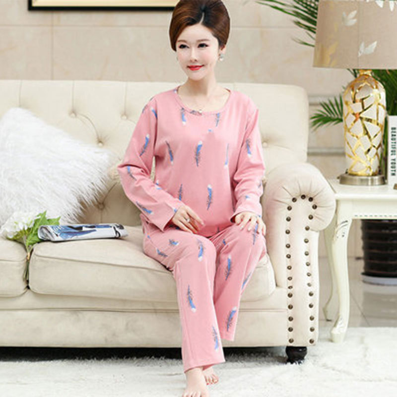 新品中高年パジャマレディース長袖長ズボンミルク糸フェザールームウェアレディーススーツゆったりルームウェア