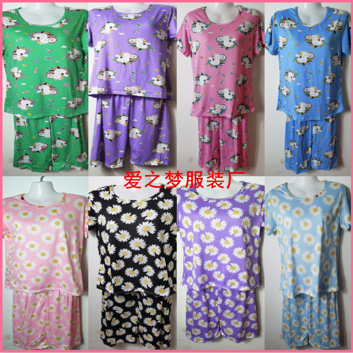 外国貿易市場の通貨は半袖の7分のズボンの女性のパジャマの薄いタイプの牛乳の糸のゆったりしている漫画の家庭服の越境します。