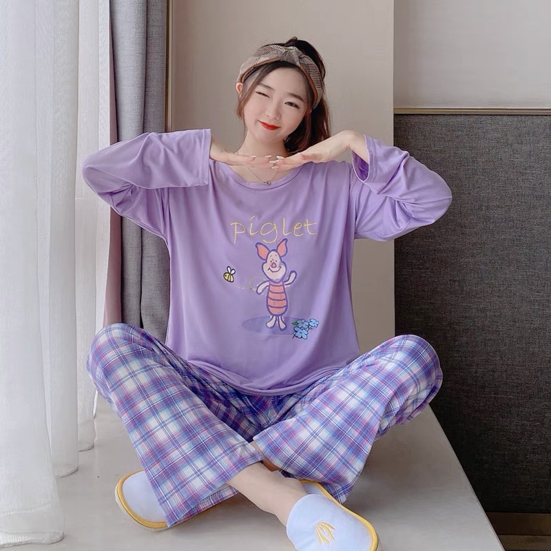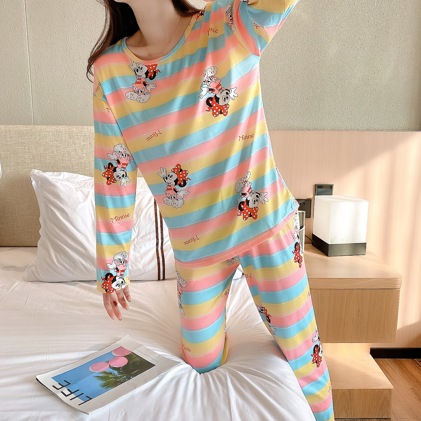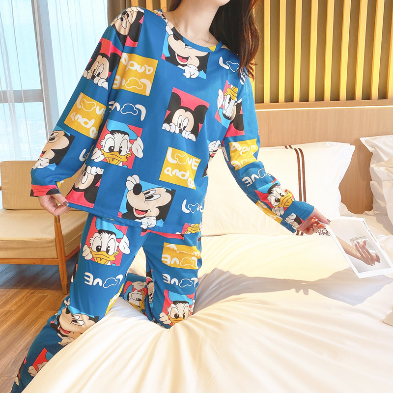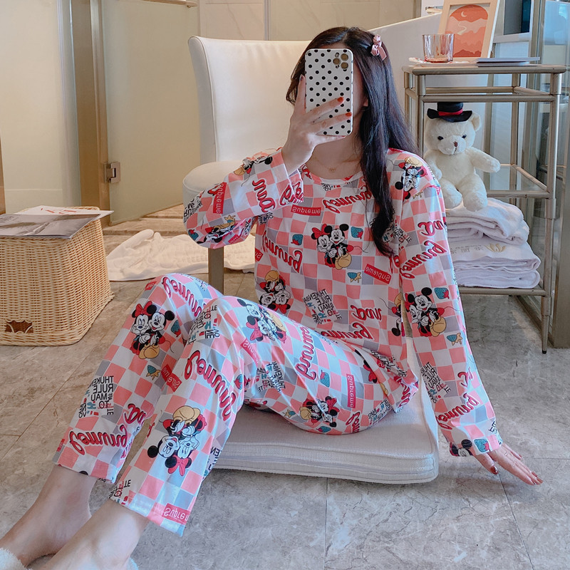 長袖のパジャマの女性の春秋プラスサイズのパジャマの女性の夏の新型の漫画の女性のレジャーのスーツは部屋の服を着ることができます。