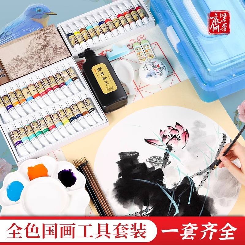 中国画初心者セット中国画絵の具水墨画セット子供成人伝統国画入門絵の具
