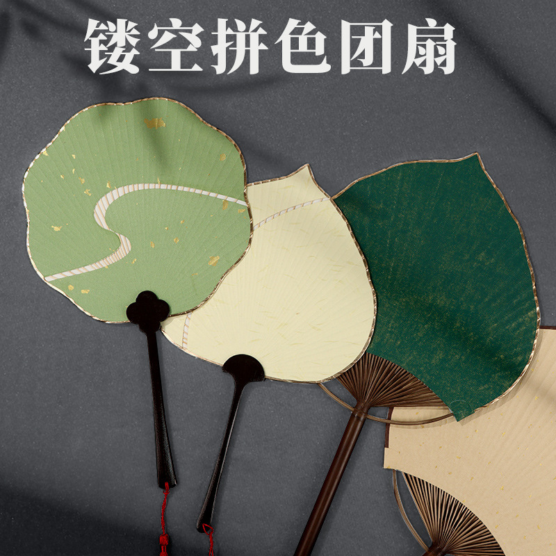 開糸団扇創意透かし扇子古風禅意宮扇盛り合わせ団扇宣紙空白日本式復古扇子