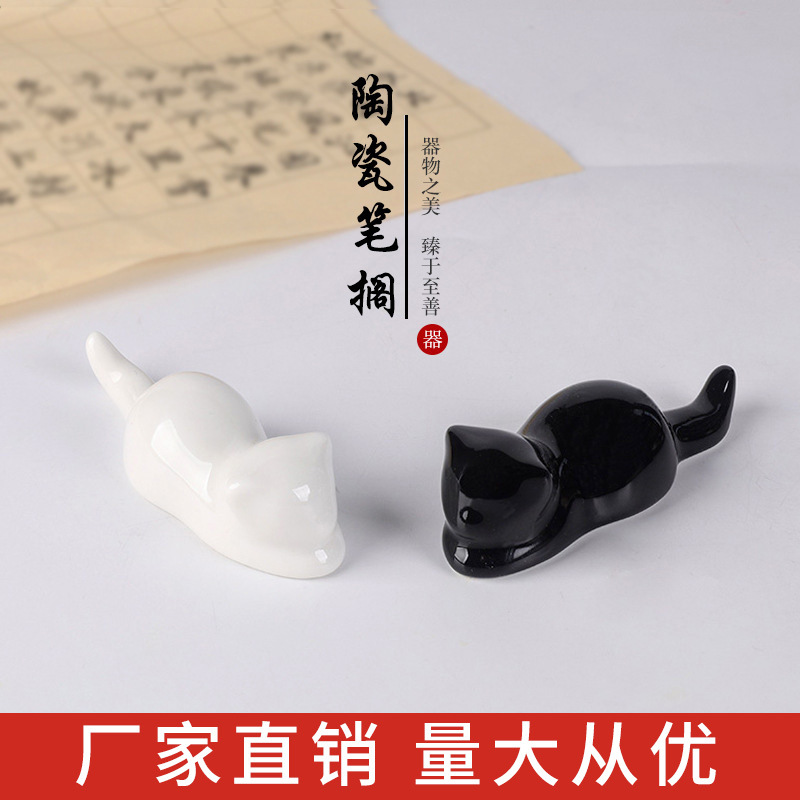 陶磁の筆の山の棚の個性の書道の創意の学生の子供の汝窯の陶磁器のかわいい猫の文の部屋の置物