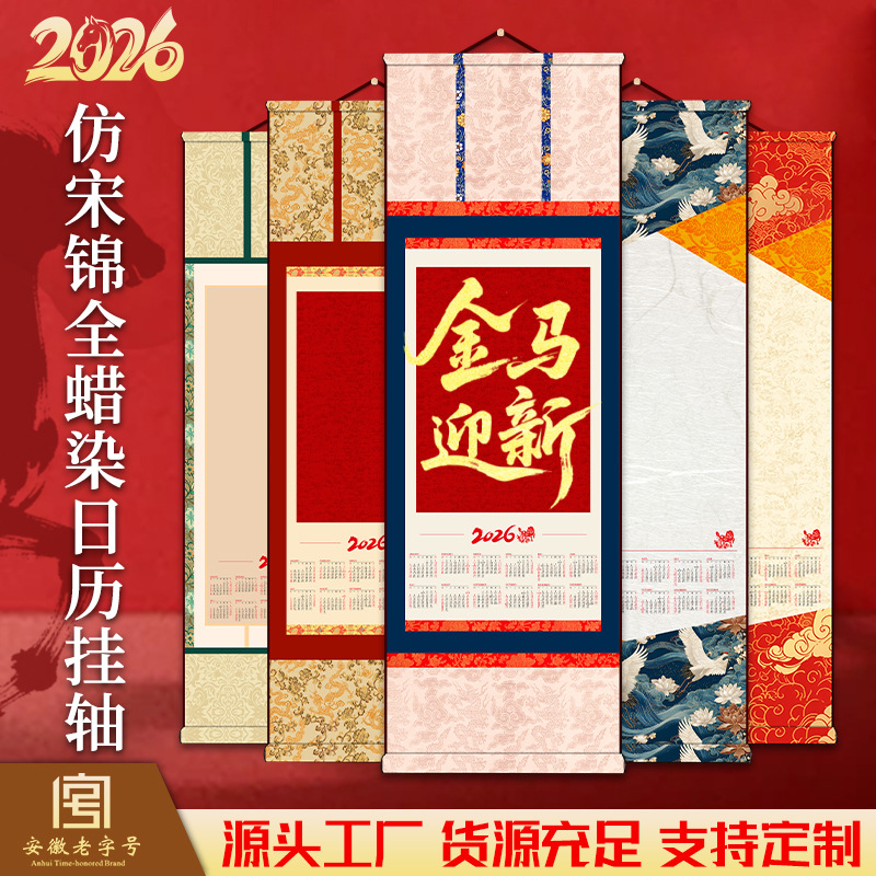 2026年馬年壁掛けカレンダー 書道作品紙 クリエイティブ広告カレンダー 巻物 黄暦 無地宣紙掛け軸