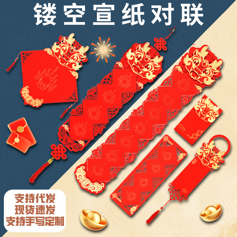 空白の赤い透かし彫りの対聯、万年紅の福字、正方形の空白の門飾りセット、結婚祝い、新築祝いの吊り下げ飾り、卸売