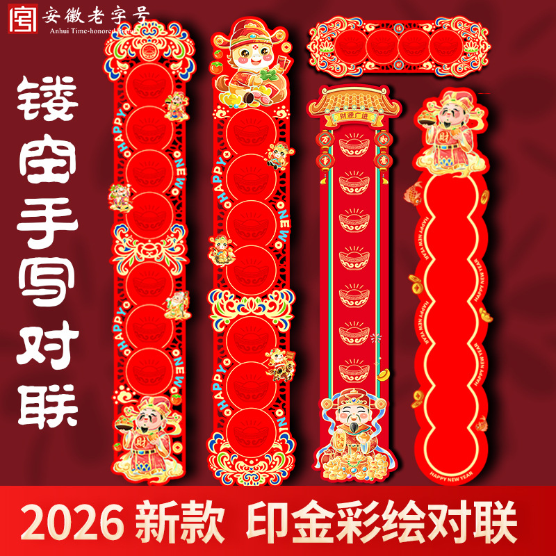 2026年漫画風春節福文字門飾り春節対聯セット卸売印刷ロゴ広告対聯磁気式