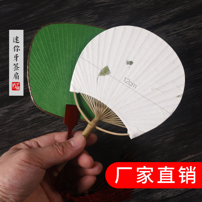 ミニ宣紙小団扇空白書道絵画手描きdiy扇面ポケット宮扇竹木柄白紙扇子