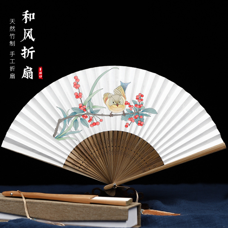 扇子折扇日本式女性式全竹扇中国風古典古風6インチ小扇折り畳みギフト扇ダンス扇