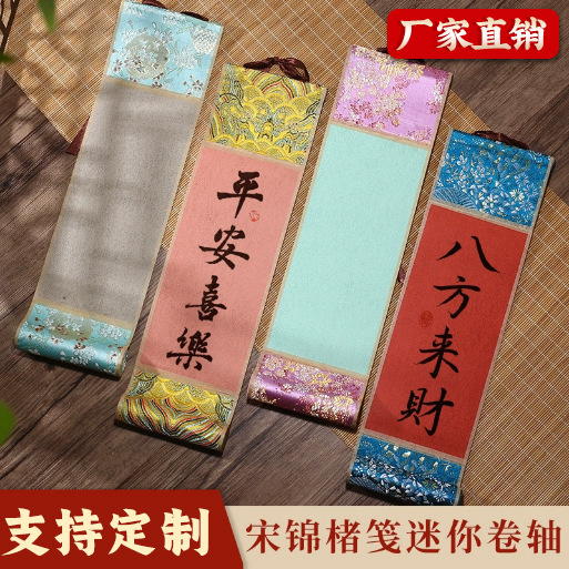 ミニチュア巻物宋錦レトロ染色掛け軸空白掛け軸書道中国画おしゃれな書画染色宣紙