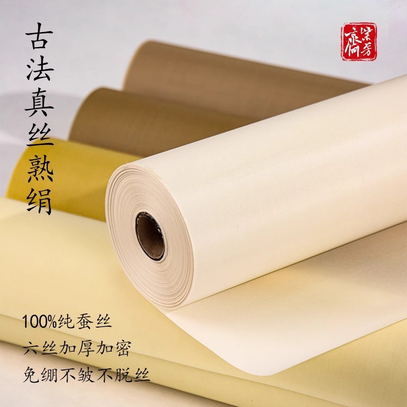古代シルク、熟したシルク生地、厚みのある桑絹、中国絵画、細筆画、白ベージュミョウバン絹、白描模写ミョウバン絹