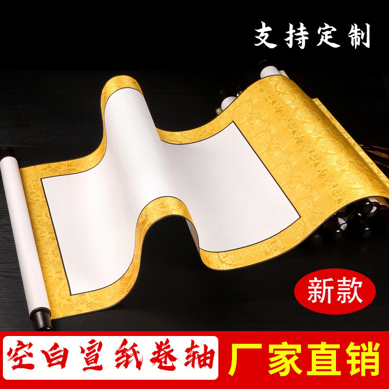 文創空白巻物書道小手巻禅意掛軸毛筆字国画捺印創作掛画縦軸卸売り