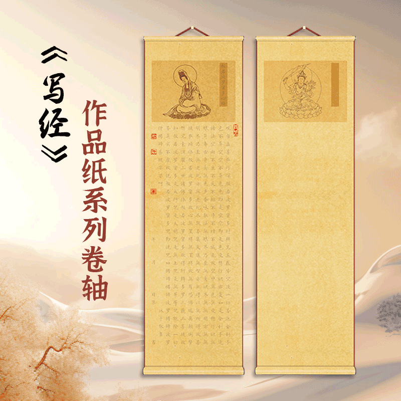 リールブランク無格掛け軸毛筆書道創作作品紙方眼模写手巻静心写字経縦軸