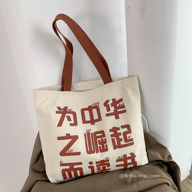中国風文字キャンバスバッグ大容量キャンバスバッグ女性シングルショルダーバッグ学生授業手提げショッピングバッグ