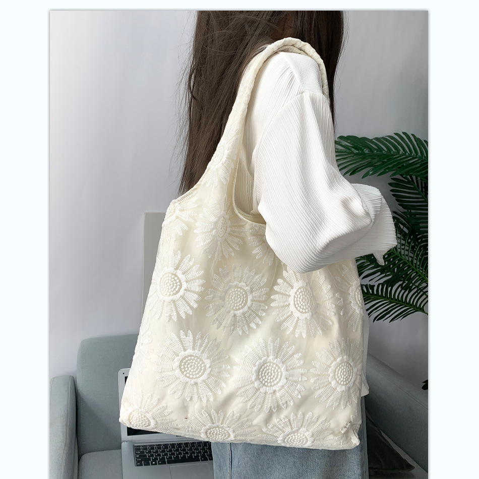 刺繍キャンバスバッグショルダーバッグメッシュショッピングバッグ夏文学学生旅行クラスストリート撮影ハンドバッグ