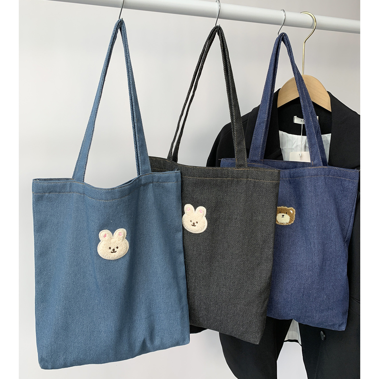 アマゾンの国境を越えたデニムバッグのショルダーバッグ刺繍がかわいいアニメのベアーのウサギの学生がかばんを手に入れる