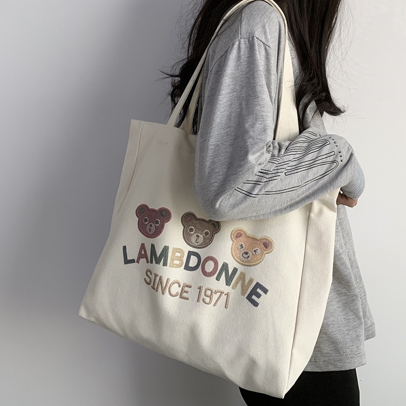 新商品のキャンバスバッグの女性の肩は日本のかわいい韓風ins大容量の学生が授業を受けてベストのキャンバスバッグを持っています。