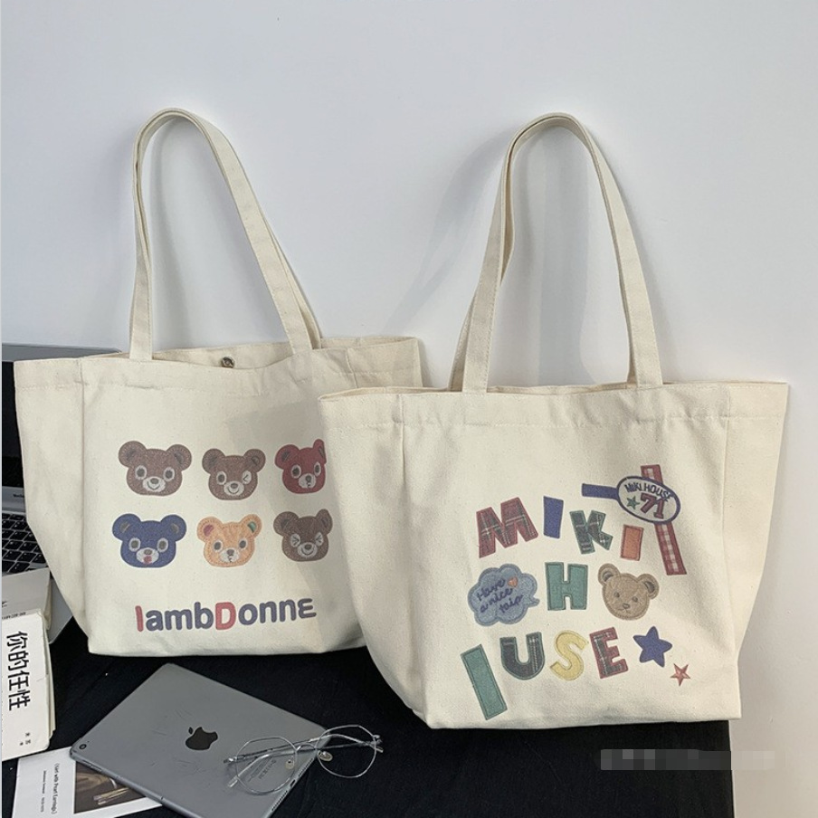 韓国版小清新漫画キャンバスバッグ女性夏ショルダーバッグ大容量シンプルで可愛い学生授業手提げ袋