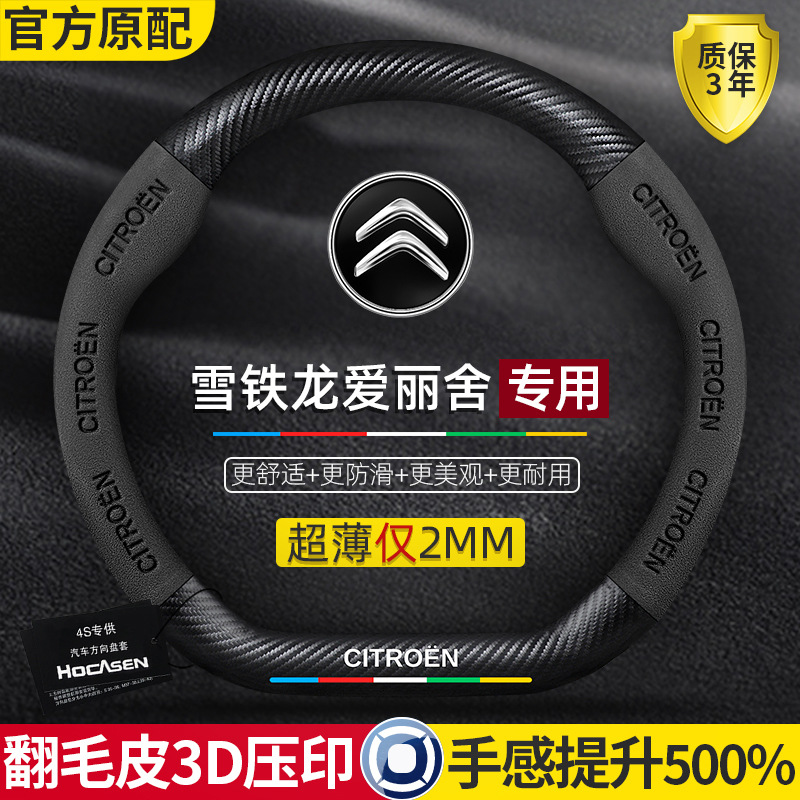 1688シトロエン エリゼ ステアリング ホイール カバー 05-19 カーボンファイバー滑り止め超薄型レザー スエード車のハンドル カバー