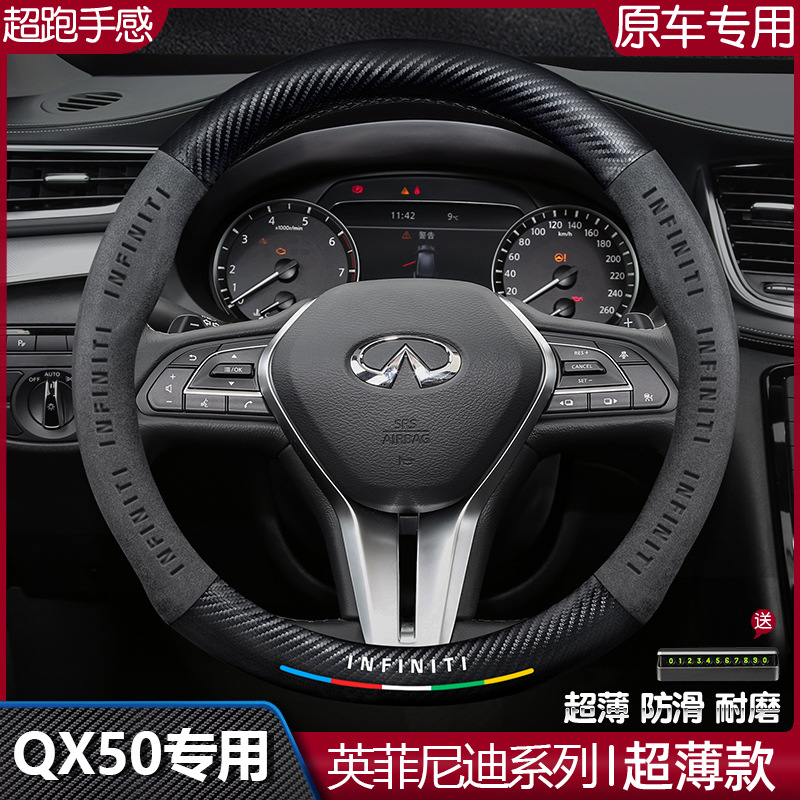 インフィニティqx50ハンドルカバー15-24種類の滑り止め炭素繊維本革起毛自動車ハンドルカバーに適しています