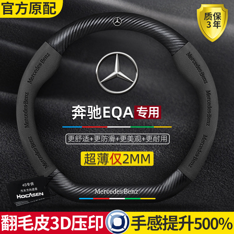 メルセデスベンツ EQA ステアリングホイールカバー 22-25 モデルレザースエードカーボンファイバーユニバーサル超薄型滑り止め車ハンドルカバー四季用