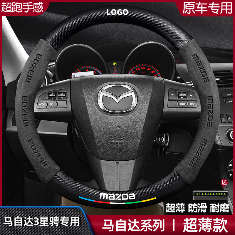 マツダ 3 スターエンデュランスステアリングホイールカバー 11-14 超薄型レザースエードカーボンファイバー滑り止め吸汗性ハンドルバーカバーに適しています。