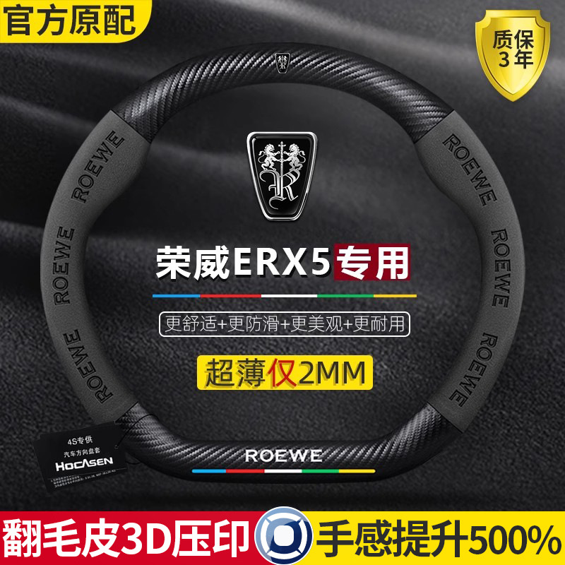 栄威 eRX5 ステアリングホイールカバー 17-23 モデルレザースエードオールシーズン超薄型カーボンファイバー車のハンドルカバー