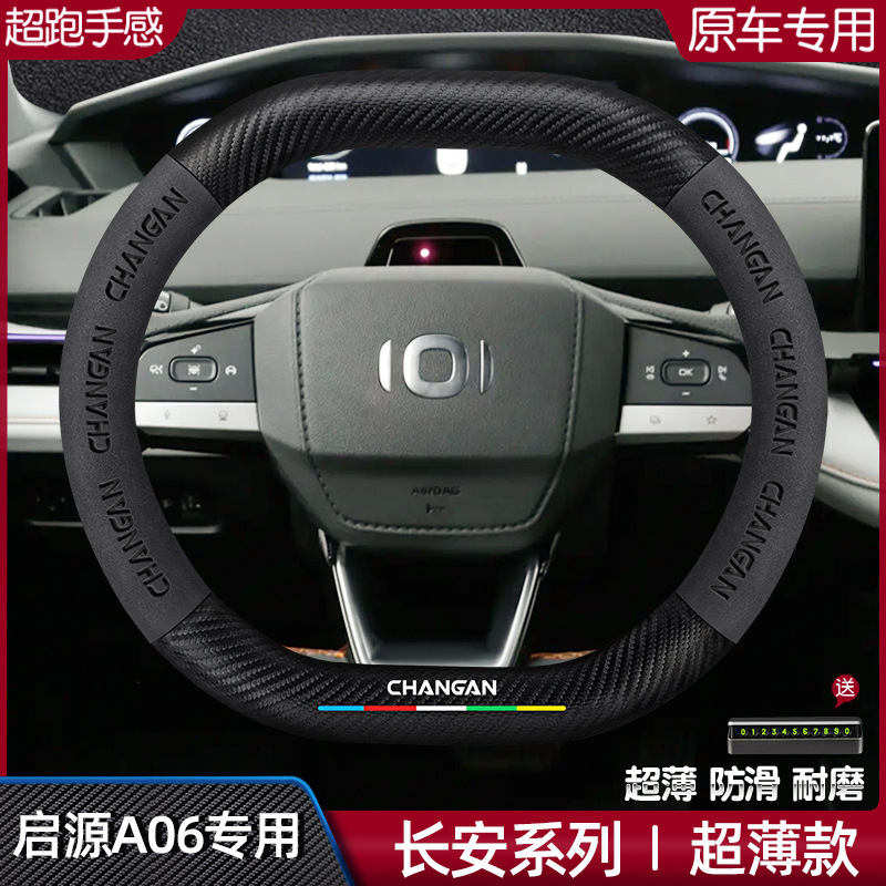 長安 Qiyuan A06 ステアリングホイールカバー 23 超薄型四季ユニバーサルレザースエードカーボンファイバー車のハンドルカバー