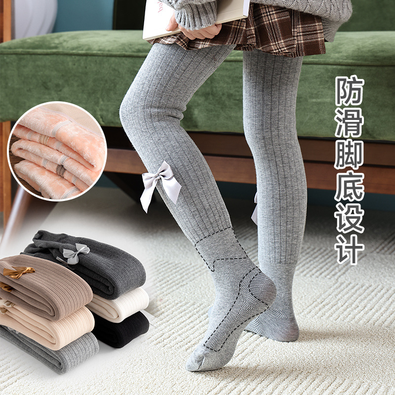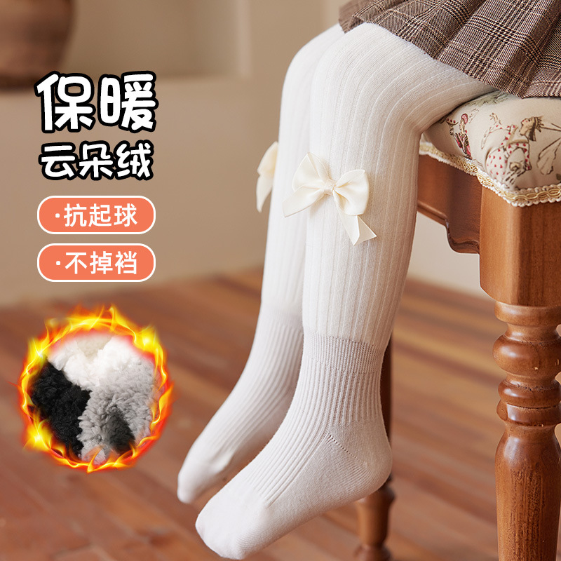 精巧な蝶結びの子供のタイツとベルベットは秋冬の新型プリンセスソックスの女の子の雲の縦のレギンスを厚くします。