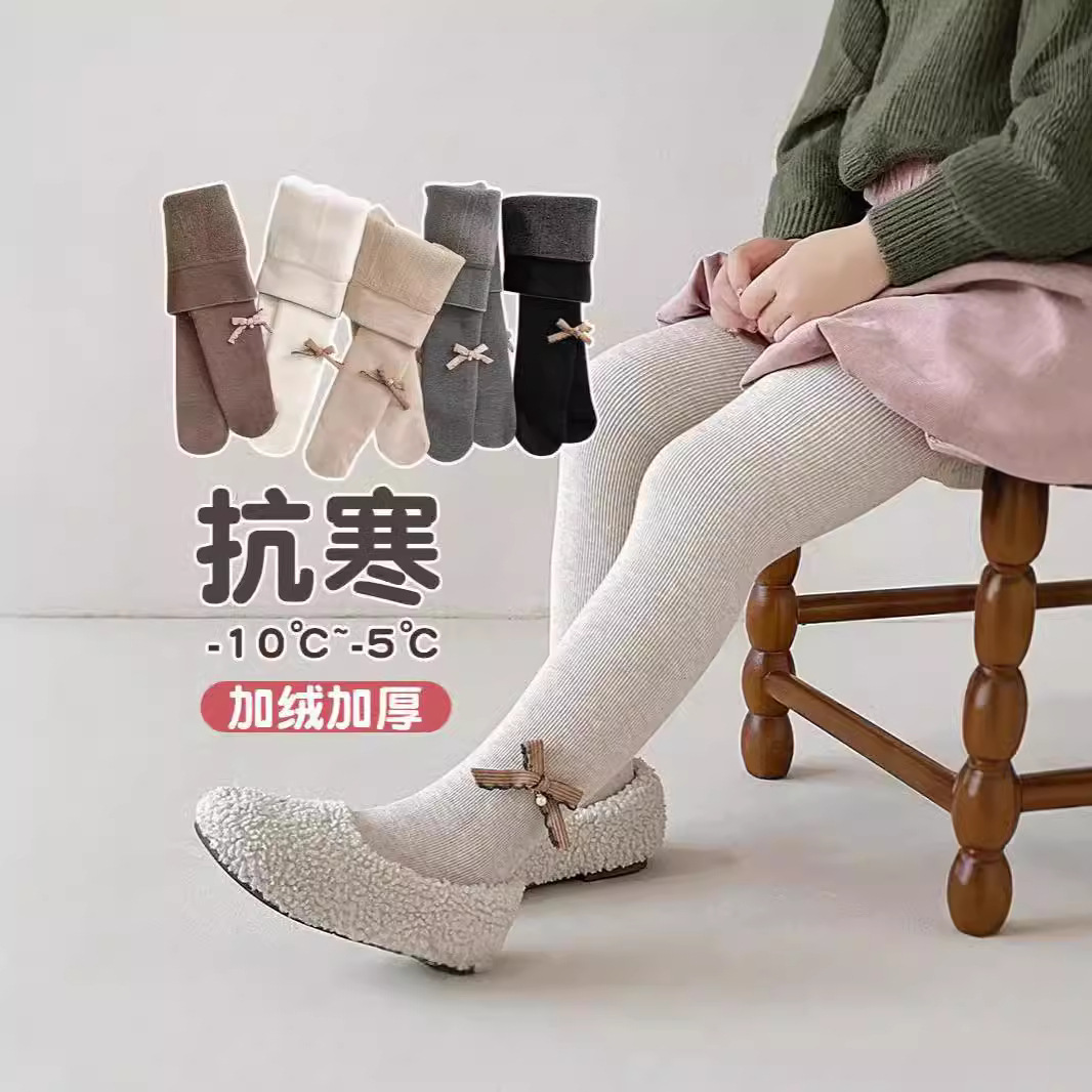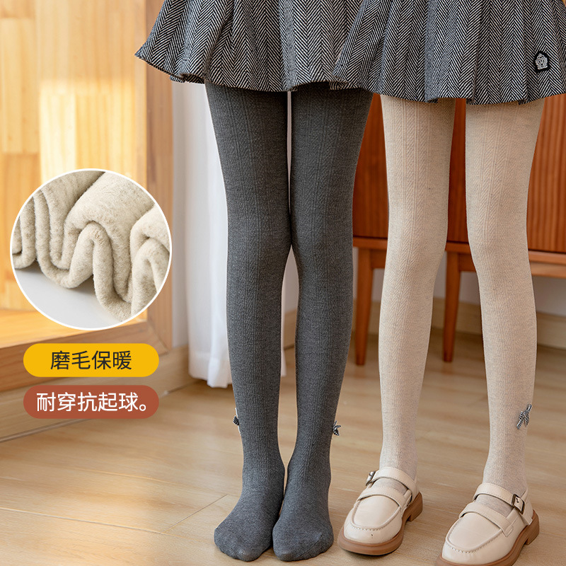子羊の毛の子供の一体のズボンの24冬の新型のベルベットは子供の蝶結びのズボンの子供のストッキングを厚くします。