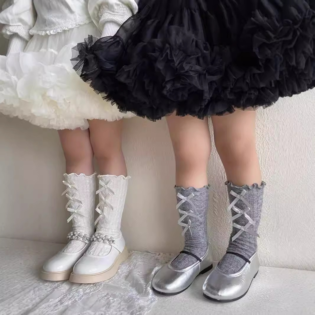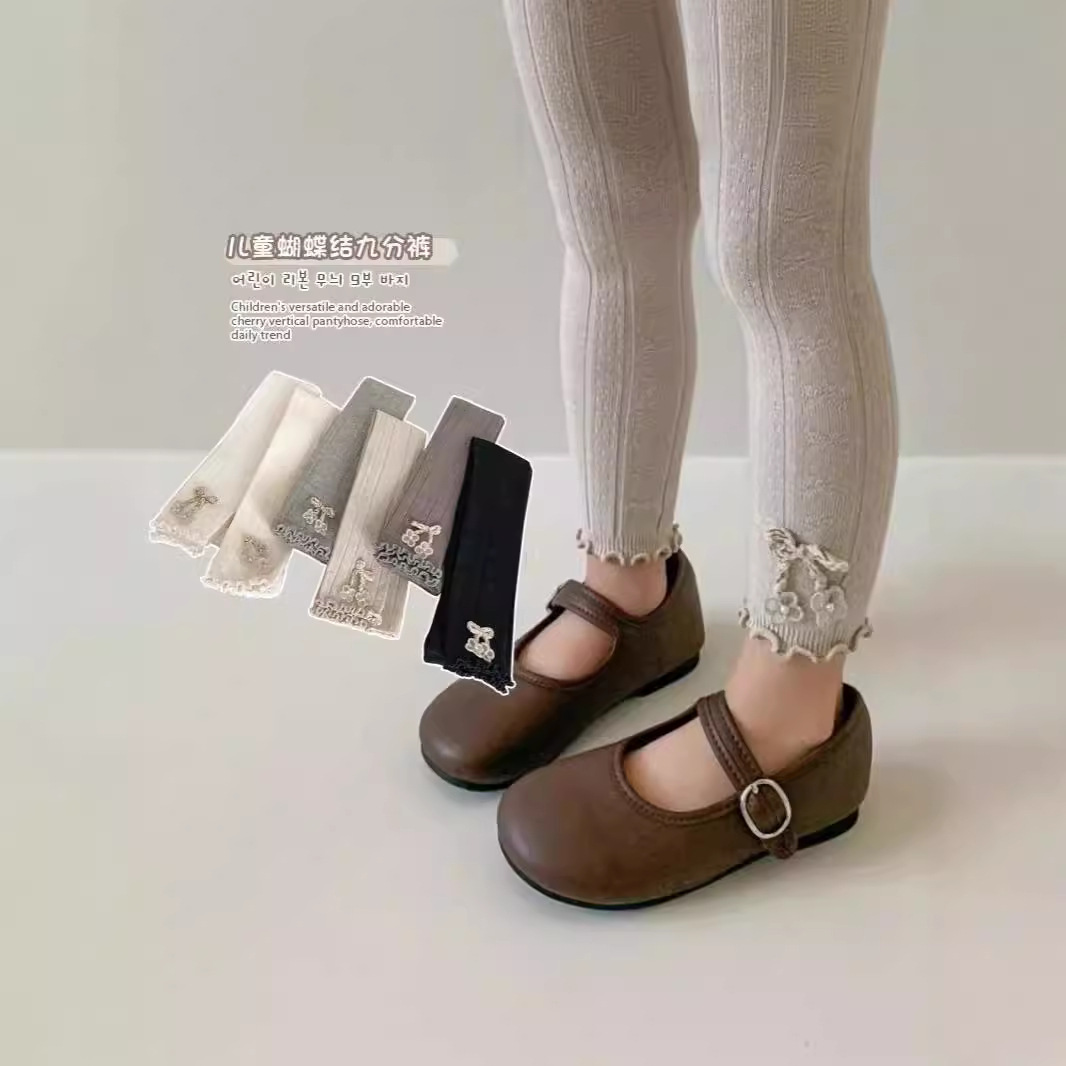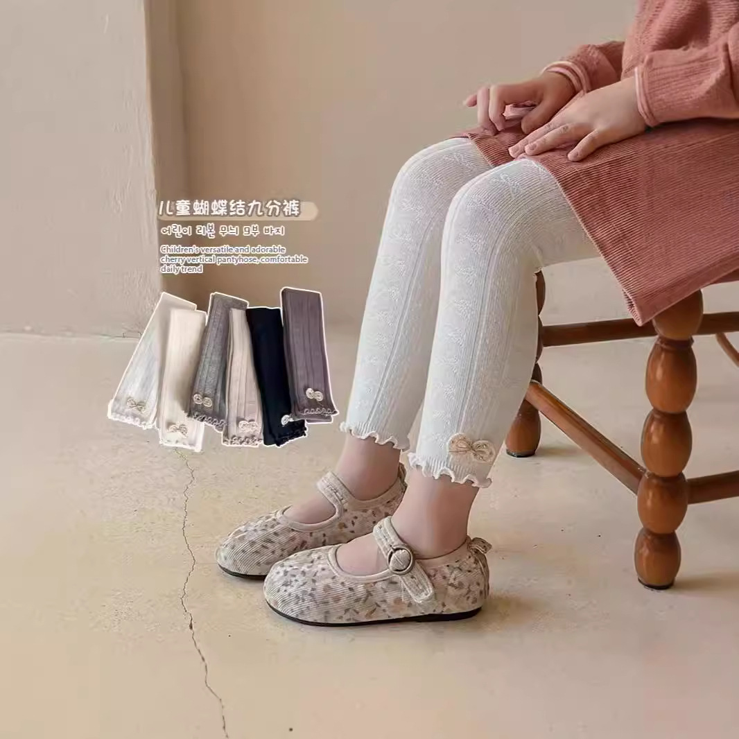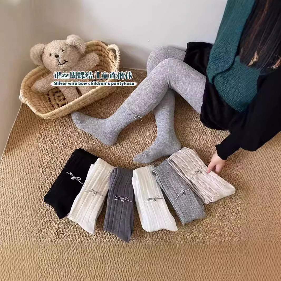 2024新型女の子パンスト子供靴下ジャカードレギンス春と秋の蝶結びレギンス