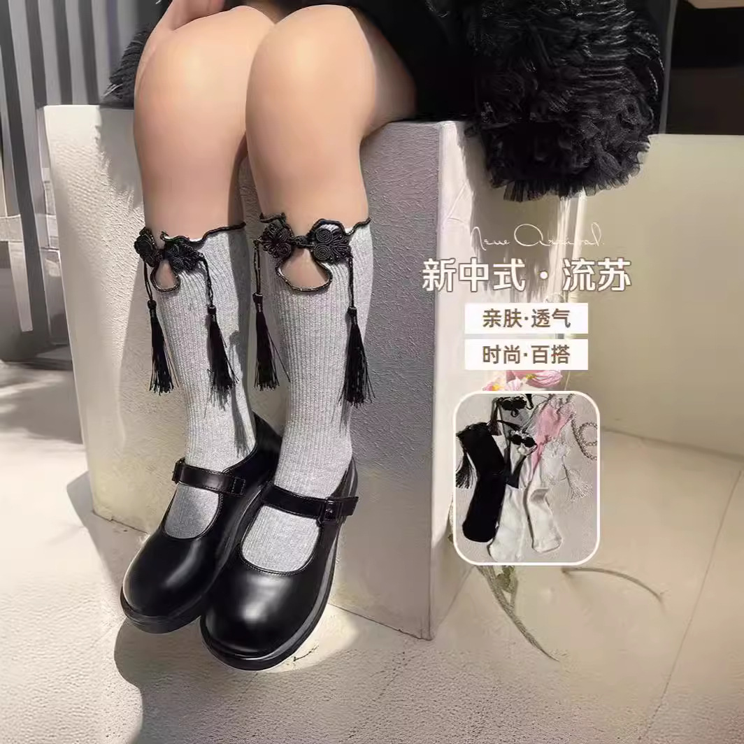 新しい国風の流蘇盤は女子の赤ちゃんのキクラゲのレースの透かし彫りの中で筒の靴下の漢服の学生の秀場を掛けて靴下を積みます。