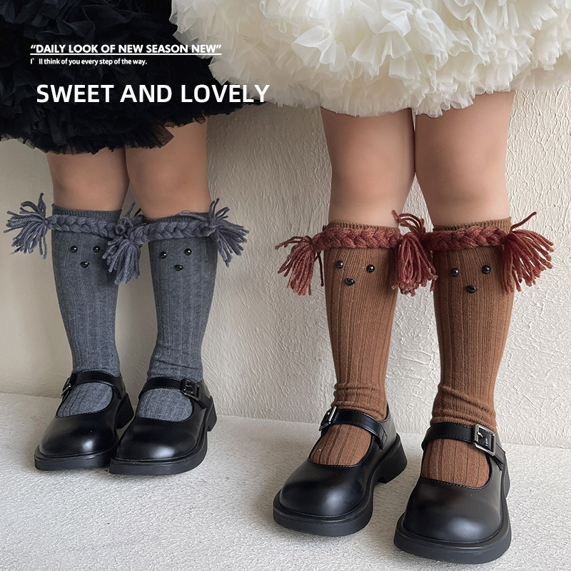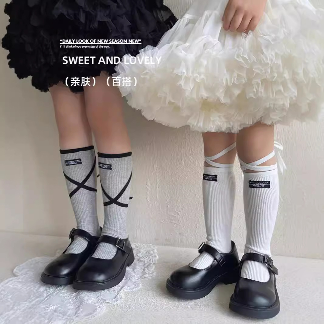 24年秋の韓国系の女の子の中筒の靴下の子供の精練の綿はありません。
